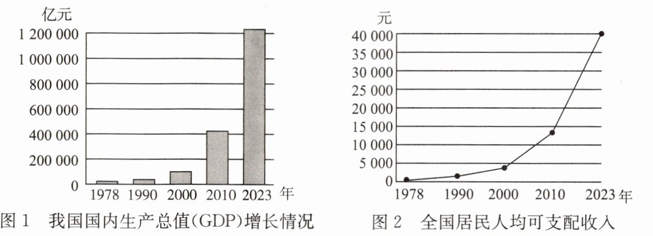 ①改革开放使我国的国际地位大幅提高 ②改革开放极大地促进了我国经济的发展 ③改革开放显著提升了我国人民的生活水平 ④GDP的增长源于居民人均可支配收入的增加
