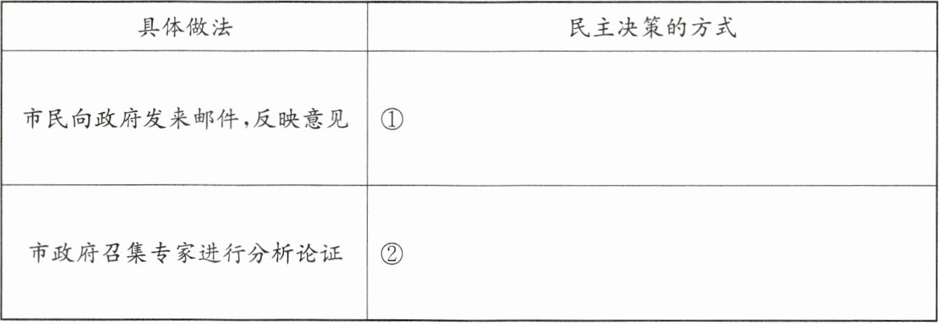 (1) 请将表格中的“民主决策的方式”补充完整。