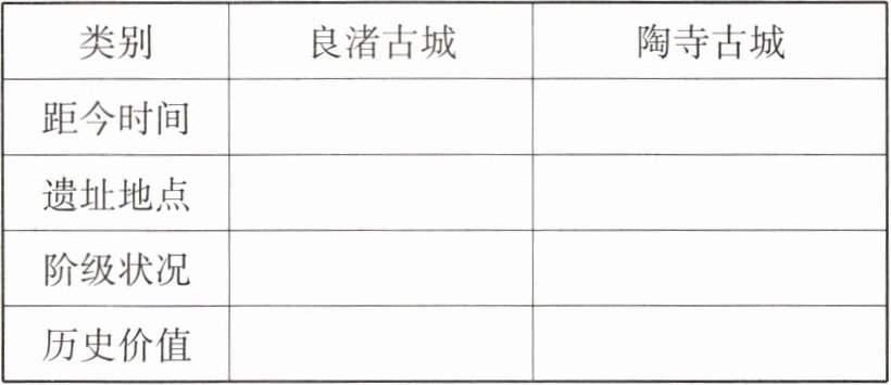 【思考】请将良渚古城和陶寺古城的相关内容填入下表。