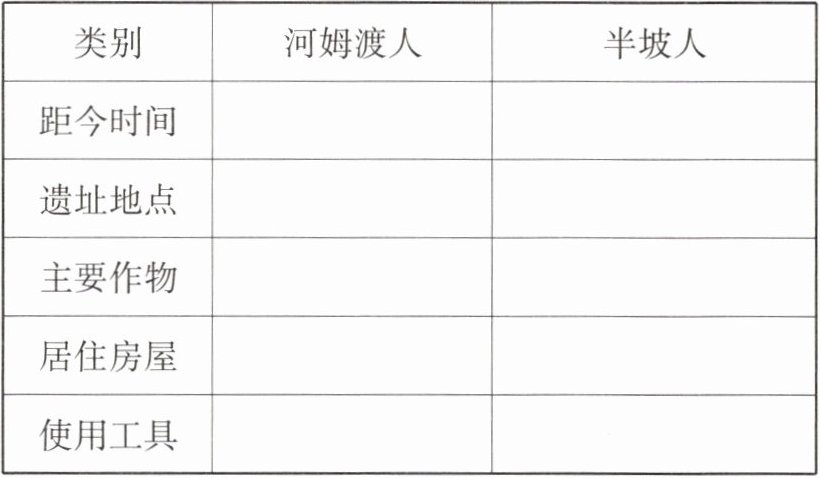 【思考】请将我国原始农业时期的相关内容填入下表。