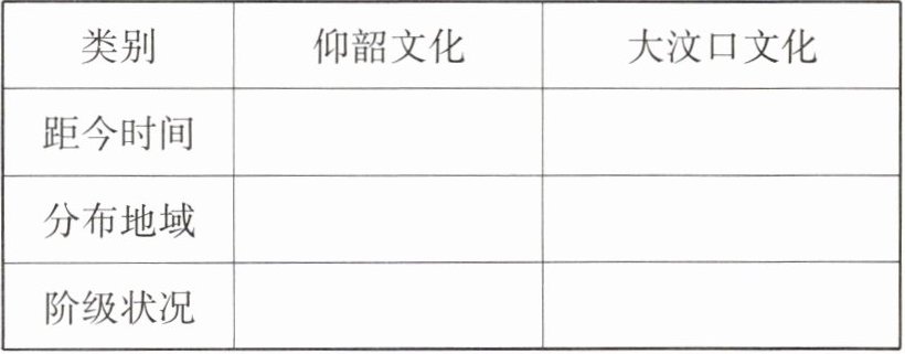 【思考】请将仰韶文化和大汶口文化的相关内容填入下表。