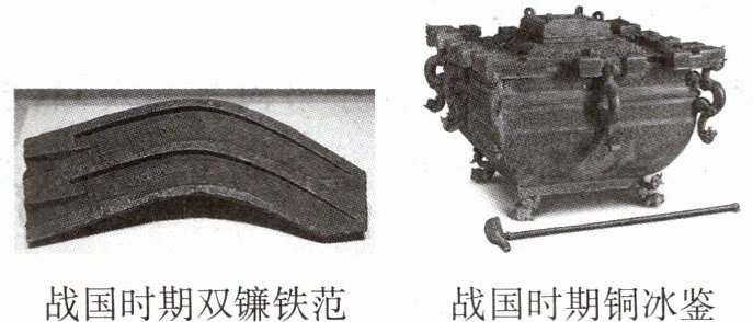 【思路导析】(1)双镰铁范表明铁器大量使用,铁制农具大量推广使用;铜冰鉴是世界上具有代表性的青铜器的杰作,表明战国时期金属冶炼业技术高超,手工业发展迅速等。(2)战国时期,蜀郡郡守李冰主持修建的大型水利工程都江堰使成都平原成为沃野。2200多年来,都江堰一直发挥着巨大作用。