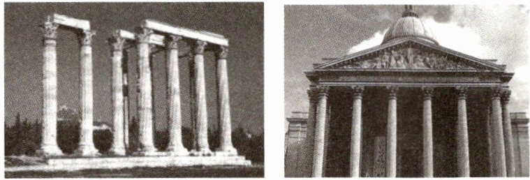 - 例 1 下图左为古希腊建筑遗址,右为罗马宗教场所万神庙。对图中内容解说正确的一项是( )