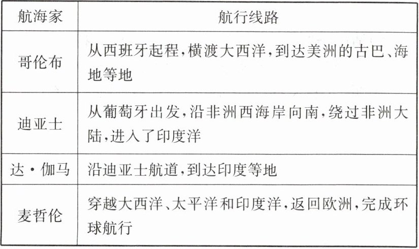 (2)哥伦布自东向西,达·伽马自西向东。哥伦布相信根据地圆学说,采用自东向西的方向一样可以到达亚洲。
