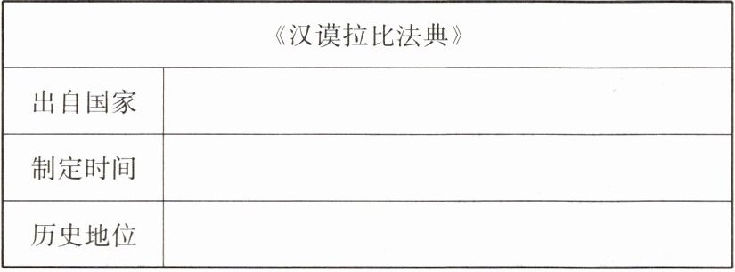 2.【思考】请将与《汉谟拉比法典》有关的知识点填入下表中。