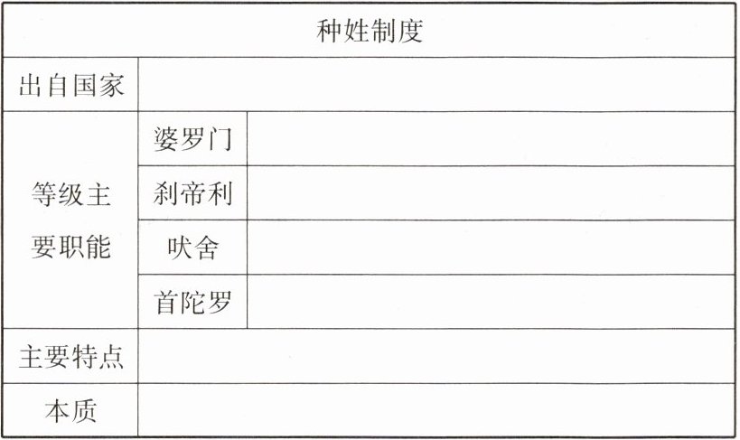 3.【思考】请将有关种姓制度的知识点填入下表中。