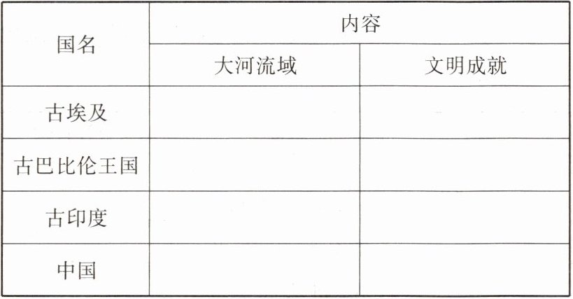 1.【思考】请将亚非四大文明古国的相关内容填入下表中。