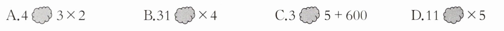 都遮住了一个数字,下列算式的得数一定大于 1000 的是( )。