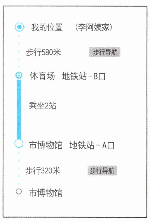 (1) 想知道李阿姨家到市博物馆大约有多远,还需要知道(