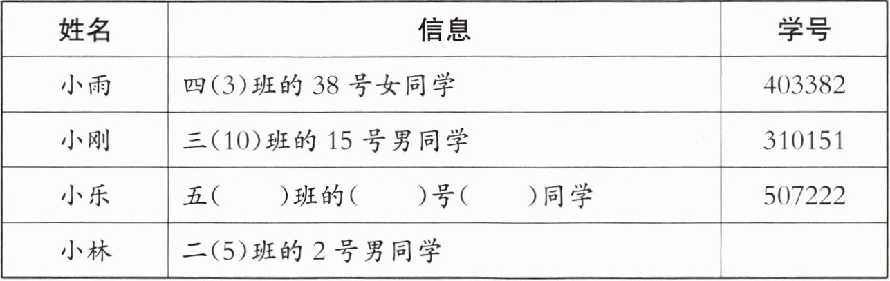 )同学|507222||小林|二(5)班的 2 号男同学|