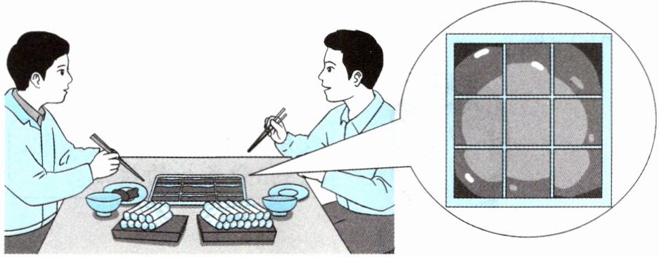 )}$;在 4 个格子里煮牛肉,煮牛肉的格子占所有格子的$\frac{(