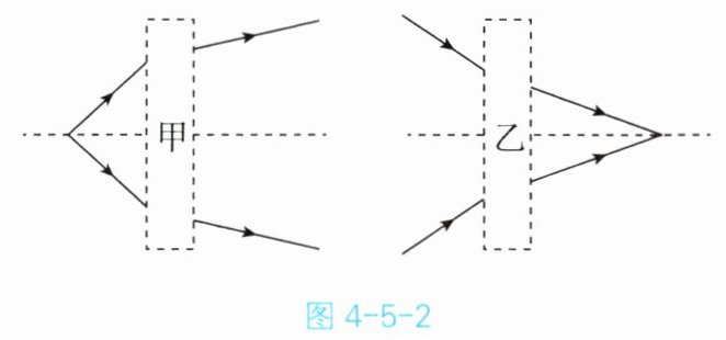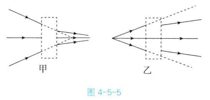 2. 为使图 4-5-5 中的光路图成立,应该在甲、乙两个虚线框内单独放入哪种透镜?甲虚线框内应放入