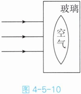 1. 如图 4-5-10 所示,有一个中空的平行玻璃砖,中空部分的形状犹如一个凸透镜。有一束平行光从左侧垂直入射玻璃砖,从右侧出射之后,是