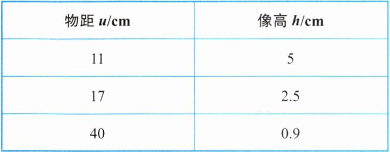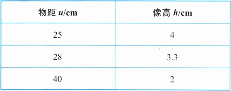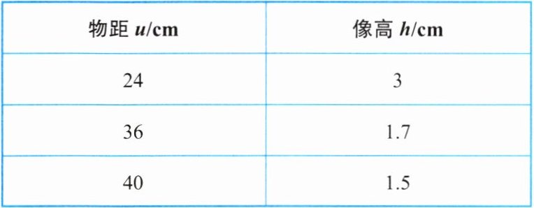 | 物距 $ u/cm $ | 像高 $ h/cm $ |