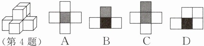 4.如果用$□ $表示1个小立方块,用$\boxed{ }$表示2个小立方块叠加,用$\blacksquare $表示3个小立方块叠加,那么图中由7个小立方块搭成的几何体,从正面看,其形状图是(