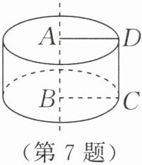 7.如图,正方形$ABCD$的边长为3,以直线$AB$为轴,将正方形旋转一周,从左面看到的所得几何体的形状图的周长是