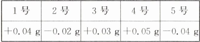 11. 【数学应用】比赛用的乒乓球的质量有严格的规定,但实际生产出来的乒乓球的质量可能会有一些误差。检验时,通常把比标准质量小的克数记为负数,把比标准质量大的克数记为正数,请你根据以下记录,选出质量最接近标准质量的乒乓球。