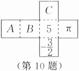 10. 【数学游戏】如图所示的是一个正方体形纸盒的表面展开图,按虚线折成正方体后,若使相对面上的两个数互为相反数,则$A$,$B$,$C$表示的数依次为