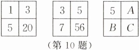 10. 如图,填在下面三个田字格内的数有相同的规律,根据此规律,$C=$