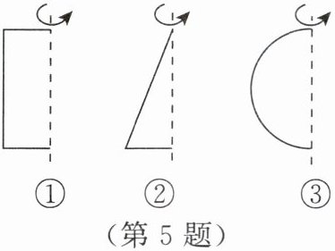 5. 如图,请你写出下列平面图形绕虚线旋转一周后得到的几何体的名称。