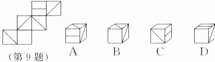 9. 如图所示的是纸盒的表面展开图,则下列选项中的纸盒能由它折叠而成的是 (