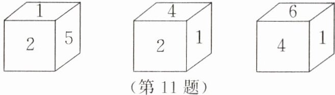 11. 正方体木块的六个面分别标有数字1,2,3,4,5,6,如图所示的是从不同方向观察这个正方体木块看到的数字,数字1对面的数字和数字5对面的数字的和是