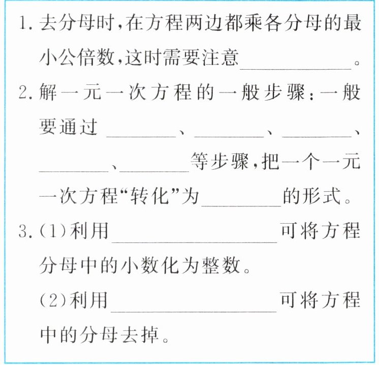 2.解方程$\frac {x + 4}{18} - \frac {1}{6}(x - 5) = \frac {x + 3}{3} - \frac {1}{2}$,去分母时,方程两边同乘的数是(