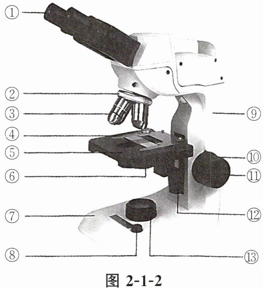 7. 图2-1-2是显微镜结构示意图,请据图回答问题。