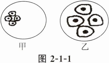 4. 图2-1-1是在显微镜下看到的两个视野,由甲到乙的转换过程,下列说法正确的是(