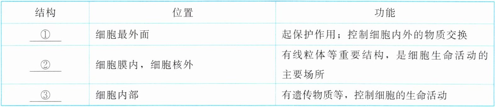 1. 动物细胞具有细胞膜、细胞质和细胞核