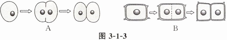 4. 仔细观察图 3-1-3 所示的细胞分裂过程,并回答问题。