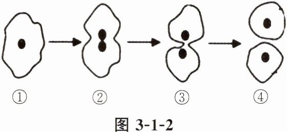 1. 图 3-1-2 表示变形虫的分裂过程,有关叙述错误的是(