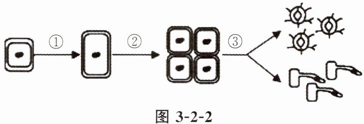 B.过程②表示细胞的分裂,遗传物质先复制后均分至两个新细胞中