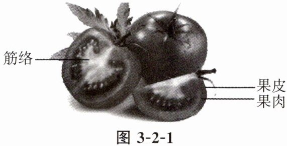 3. 西红柿味美多汁,图3-2-1中的“果皮”“果肉”和“筋络”分别代表西红柿的哪种组织? (