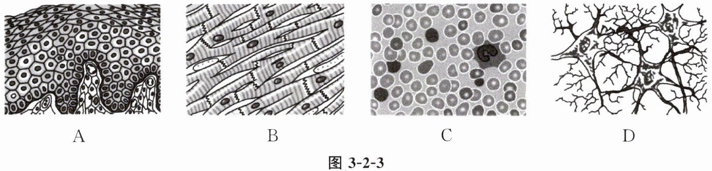 6. 图3-2-3是四种组织的示意图,其中能够接受刺激、产生和传导兴奋的组织是(