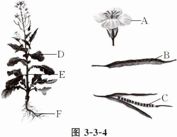 9. 图3-3-4是一株油菜植株及部分结构的示意图,仔细观察图片并回答下列问题。