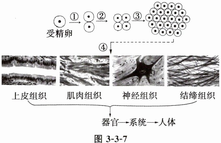4. 图3-3-7为人体组织形成过程以及人体的结构层次示意图。请分析回答问题。