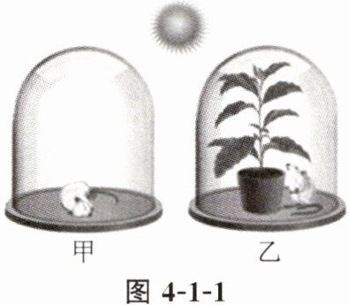 7. 某生物兴趣小组模仿英国科学家普里斯特利的实验,设计了如图4-1-1所示实验装置,玻璃罩是密闭的。请据图回答以下问题。