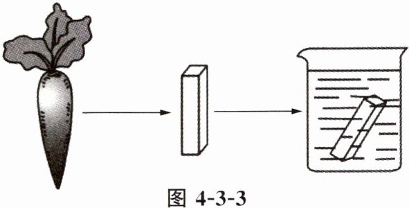 3. 某学生在探究外界溶液浓度对植物吸水的影响时,将新鲜萝卜切条后放置于浓盐水中,如图4-3-3所示,一段时间后,萝卜条长度将(