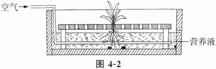 2. 无土栽培是一种现代植物栽培技术,植物不是栽培在土壤中,而是种植在配制的营养液中,此技术可突破季节和空间限制,有效节约水资源,具有广阔的前景,图4-2为无土栽培装置示意图,请回答以下问题。