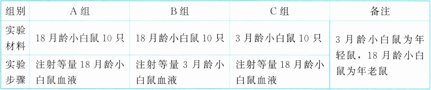 6. 当今一些生物学家在研究小白鼠实验时,发现了“返老还童”的生命现象,这或许给人们延缓衰老提供了新的思路。以下是该研究的实验设计方案。
