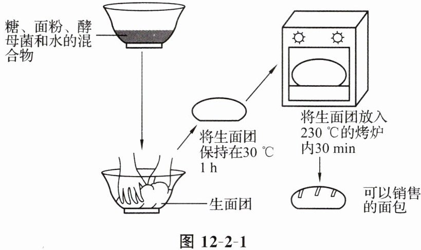 5. (跨学科实践)酵母菌经常被用来制作面包,图 12-2-1 表示面包的制作过程(酵母菌在有氧的条件下,分解葡萄糖,产生二氧化碳和水;在缺氧的条件下,分解葡萄糖,产生酒精和二氧化碳)。
