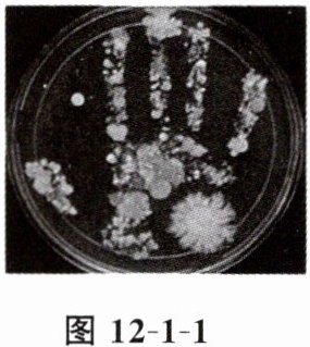 6. 人的手上有大量微生物,无菌固体培养基经人手按压,培养一段时间后呈现图12-1-1所示的结果。下列相关叙述错误的是(