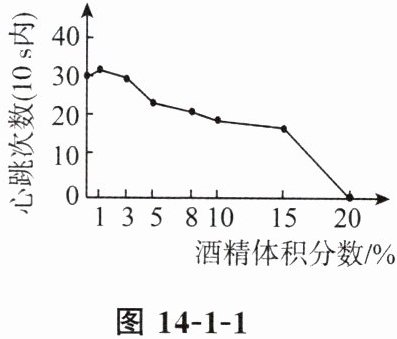 2. 某生物兴趣小组探究了不同体积分数的酒精对水蚤心率的影响,结果如图14-1-1所示,下列相关说法正确的是(