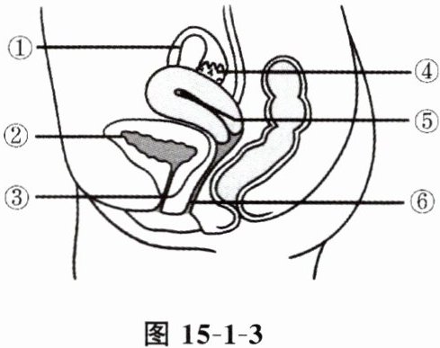6. 图15-1-3为女性生殖系统组成模式图。试填写有关内容。