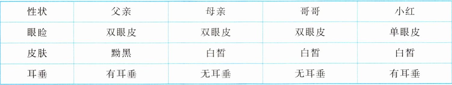 5. 下表是小红同学对自己家庭成员的个别性状调查的统计情况,请据表回答有关问题。