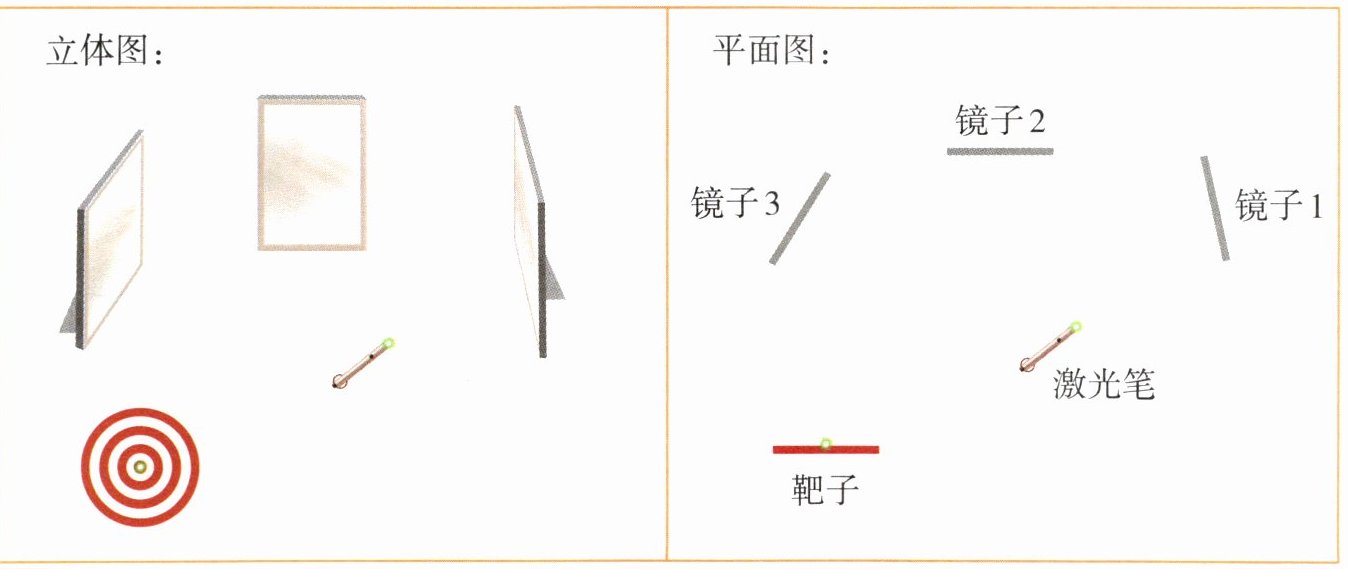 3. 试画出“接力打靶”游戏中光的行进路线。