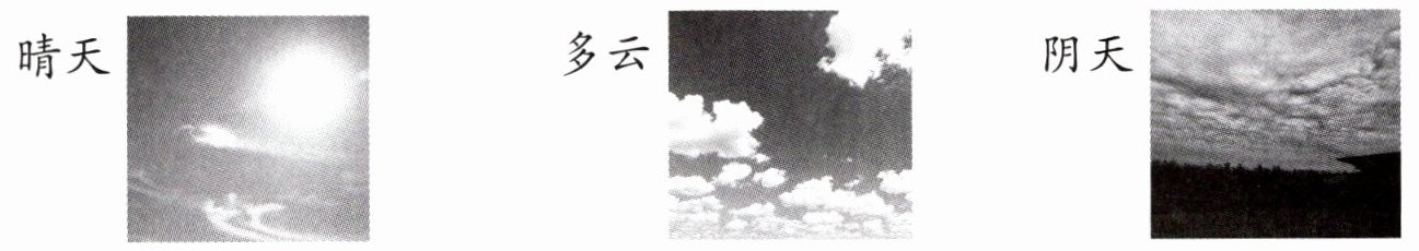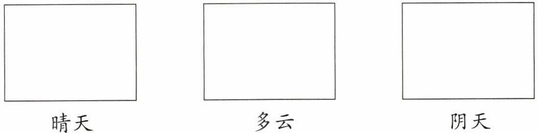 3. 请根据晴天、多云、阴天中云量的不同情况,画出相应的天气符号。