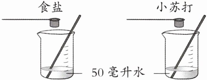 如下图所示,小秋和小书想通过实验比较食盐和小苏打在水中的溶解能力,实验步骤如下。