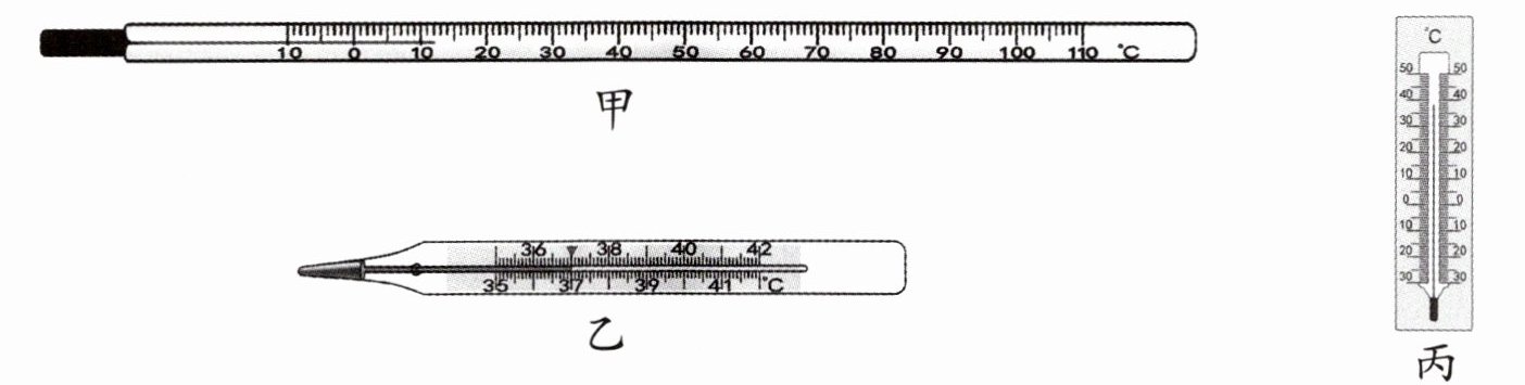 1.水温计 体温计 气温计 2.110 ℃ 42 ℃ 3.气温计 更准确的气温数据 4.不可以,因为开水的温度超过了气温计和体温计的量程(合理即可)